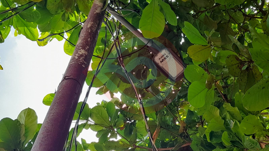 Poste de alumbrado público en riesgo de caída en la plaza 21 de Mayo