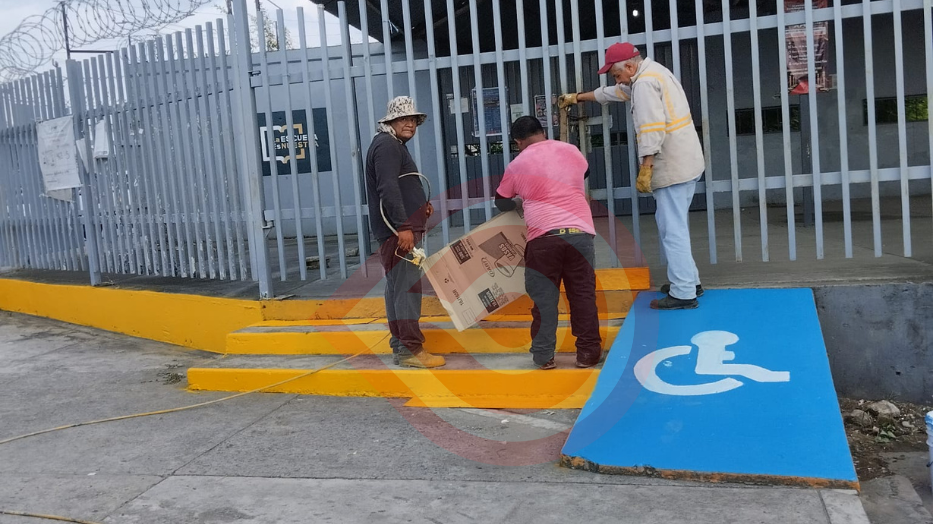 Explicó que, en el sector de la Escuela Primaria “Lauro Aguirre”, de la colonia 5 de Mayo, se realizó el pintado de rampas para personas con capacidades diferentes; rehabilitación de pintura de barandales de protección y cambio de señaléticas.