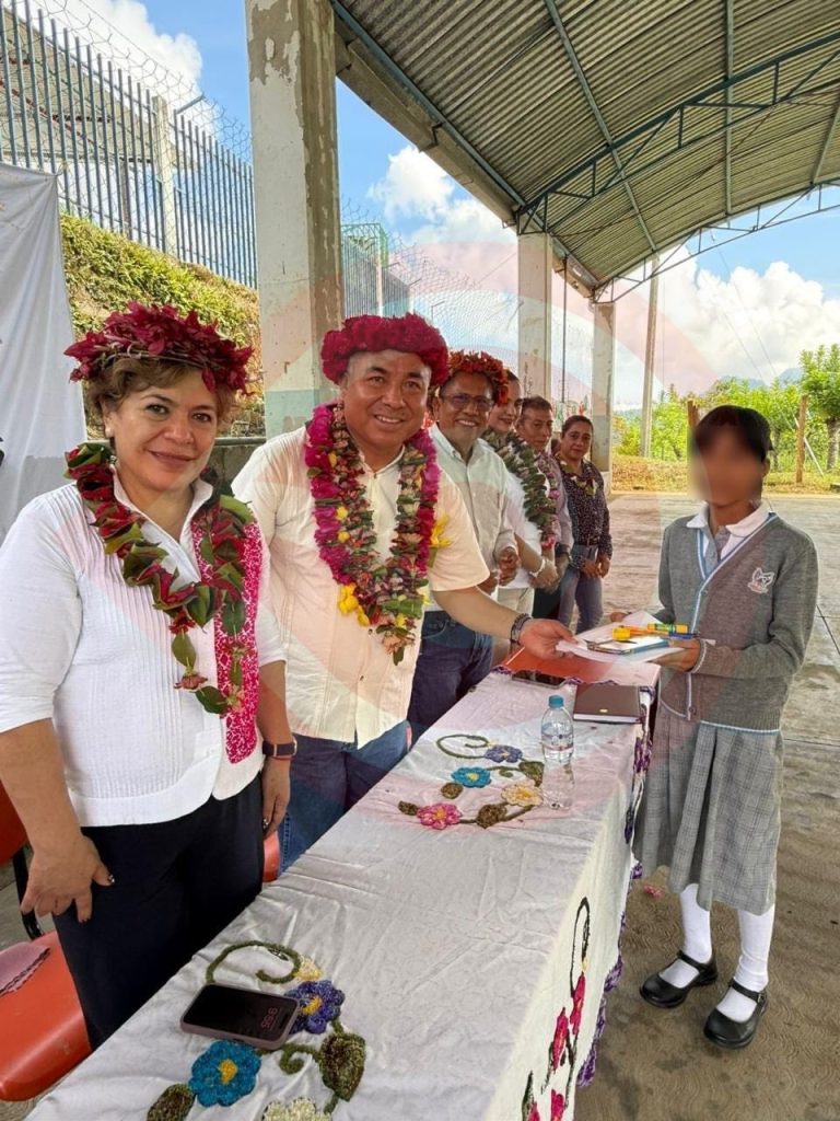El motivo de la visita fue participar en los honores cívicos para celebrar el inicio del ciclo escolar 2025-2026 en la Escuela Primaria General Adolfo López Mateos de dicha comunidad.