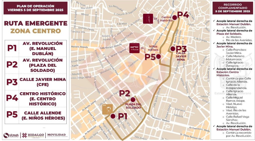 • Para mayor comodidad de las personas, se pondrá a disposición una Ruta Emergente de la estación Manuel Dublán al Centro Histórico.
