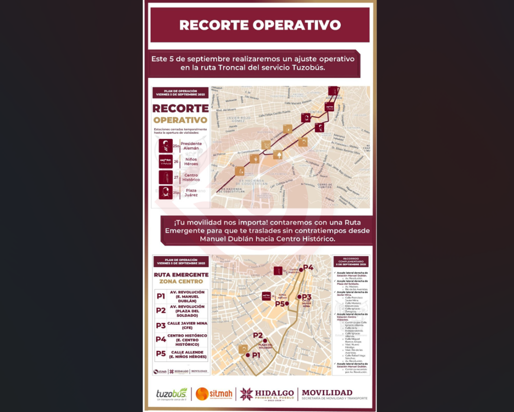 Movilidad anuncia operativo de transporte por 3.er Informe de Gobierno, en Pachuca