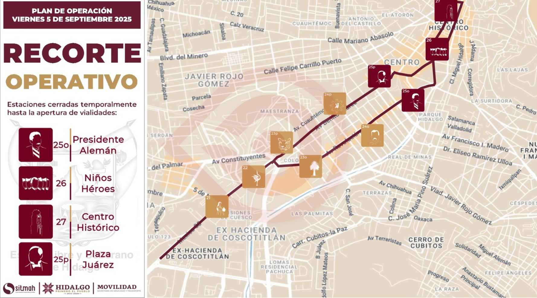 Las estaciones Centro Histórico, Niños Héroes Oriente y Poniente, Plaza Juárez y Presidente Alemán, permanecerán cerradas hasta el término del evento y el restablecimiento del tránsito vial, en el transcurso de la tarde.