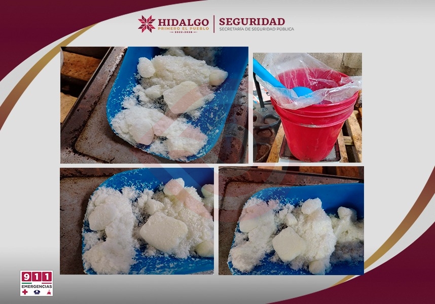 Pachuca de Soto, Hgo. – Mediante la ejecución de cuatro cateos simultáneos en la localidad de Hueyotlipa, municipio de Acatlán, la Secretaría de Seguridad Pública de Hidalgo (SSPH), en coordinación con Ejército Mexicano, Guardia Nacional y la Procuraduría General de Justicia del Estado (PGJEH), logró el desmantelamiento de un laboratorio clandestino utilizado, presuntamente, para la elaboración y distribución de posible droga sintética.