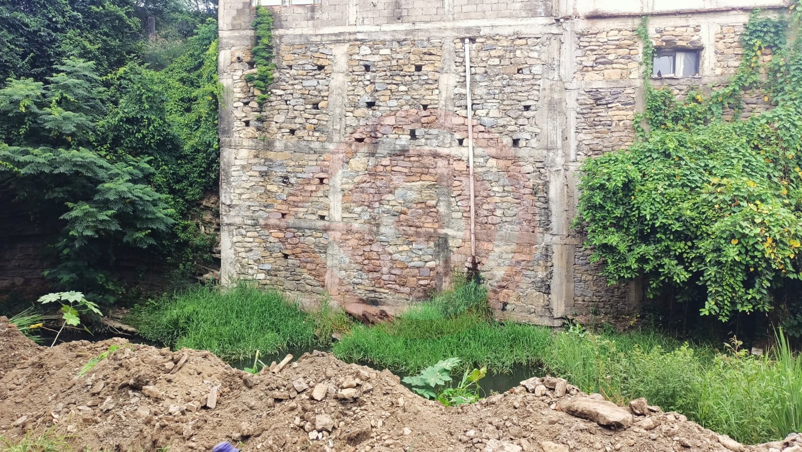 Sobre dos boquetes de una pared rústica al otro lado del afluente, abejas encontraron el lugar idóneo para crear un enjambre, sin embargo, durante los trabajos de excavación que se realizan para la construcción de un muro de concreto, con el ruido de la maquinaria pesada los insectos se alborotaron, y persiguieron al maquinista.