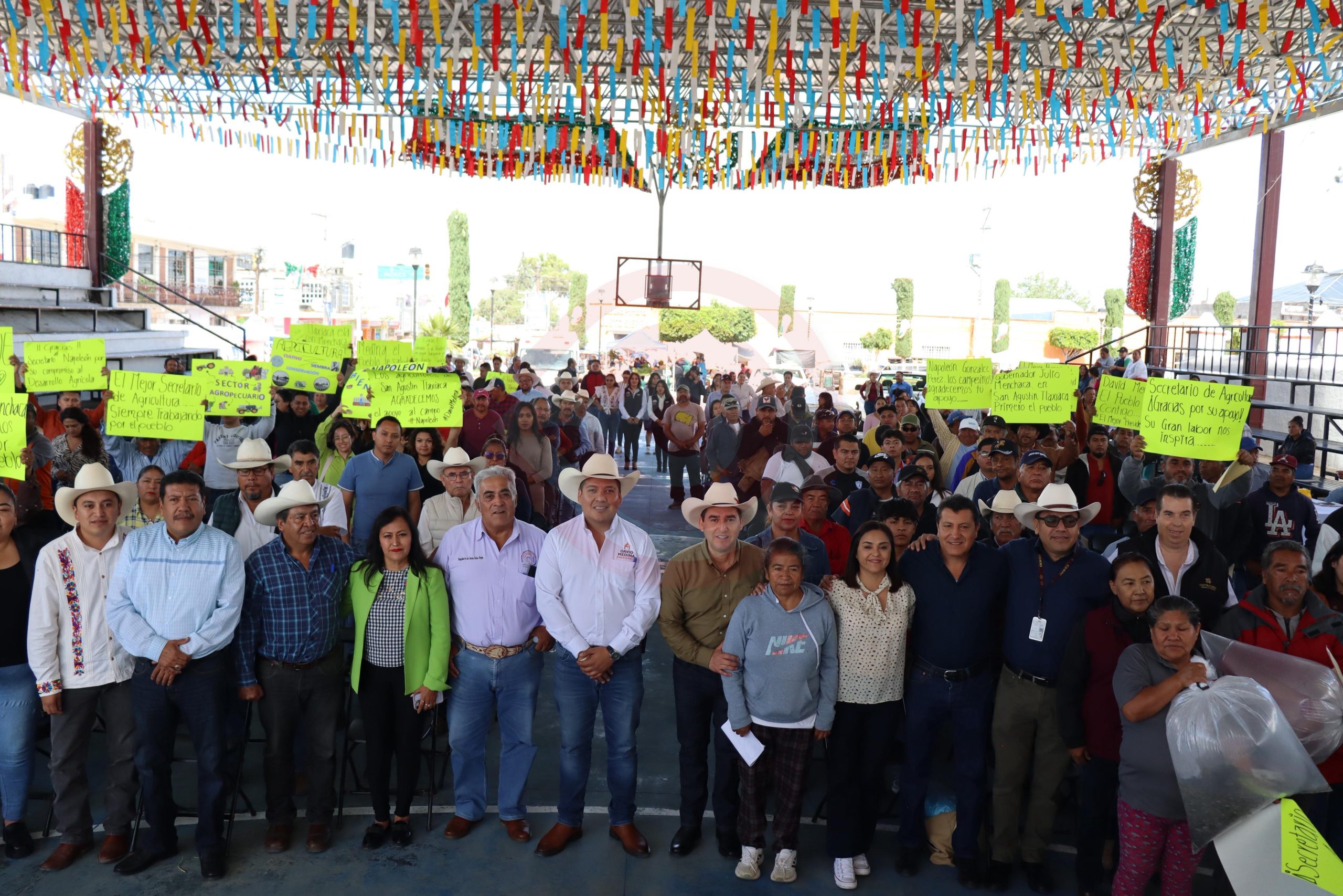 Durante la gira de trabajo, el secretario de Agricultura y Desarrollo Rural, Napoleón González Pérez, entregó los apoyos en presencia de la diputada Cynthia Delgado, el presidente municipal de San Agustín Tlaxiaca, Mario David Medina, y el presidente del Comité Acuícola Hidalguense de Sanidad, Dagoberto Islas, demostrando su compromiso de trabajar en conjunto.