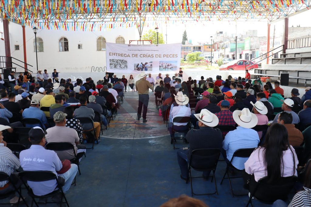 San Agustín Tlaxiaca, Hgo. – Con el objetivo de fortalecer la acuacultura y mejorar la alimentación de las familias de productoras y productores de Actopan, El Arenal, Ixmiquilpan, Pachuca de Soto, San Agustín Tlaxiaca, San Salvador y Santiago de Anaya, se realizó la entrega de 155 mil crías de tilapia.