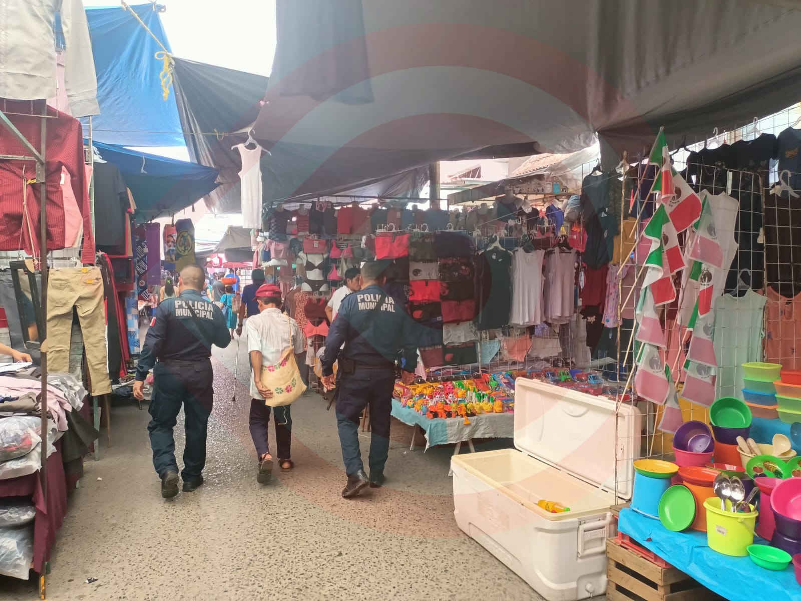 Este domingo, ante la afluencia de ciudadanos y para evitar “carteristas” en el tianguis, constantemente se realizan recorridos a pie dando seguridad a los asistentes y mercaderes.