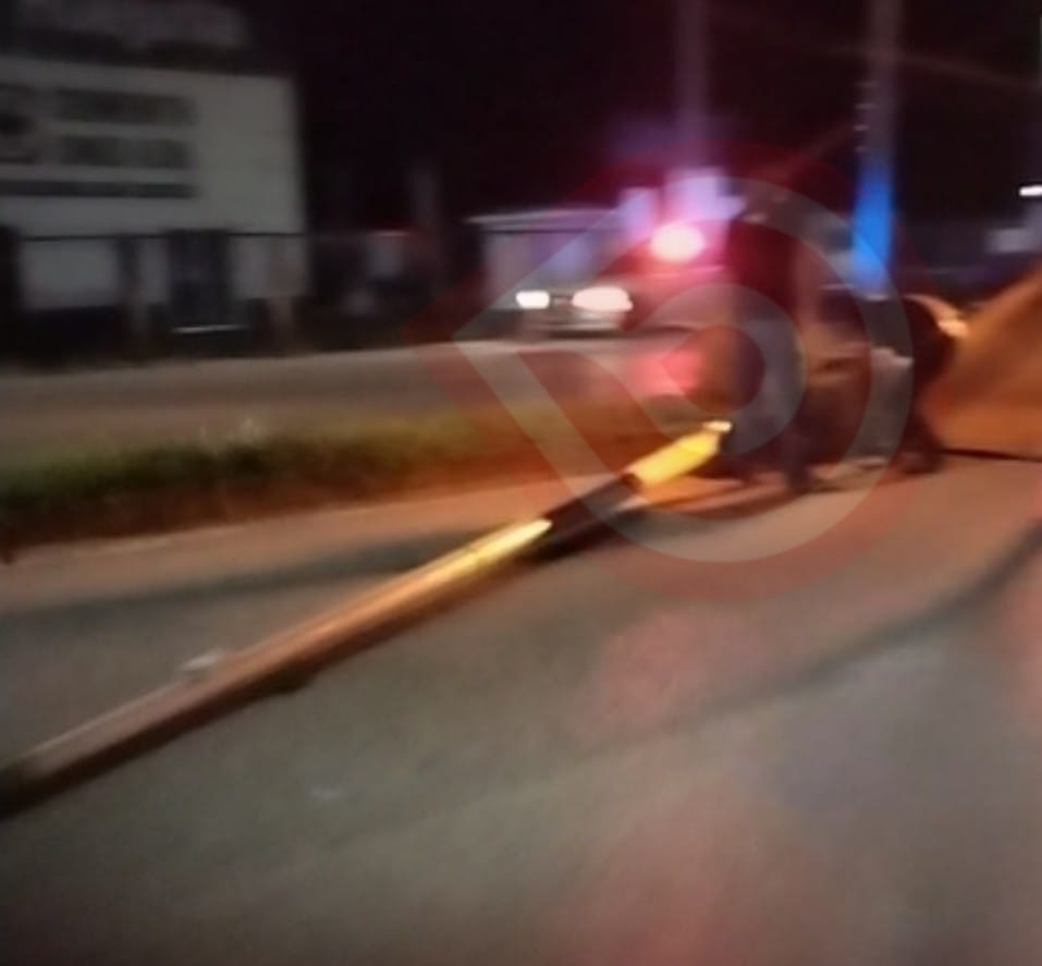Huejutla, Hgo. – El conductor de una camioneta chocó y derribó un poste metálico de alumbrado público sobre la vía federal México-Tampico en las inmediaciones de la colonia Moreno de esta ciudad, corporaciones policiacas acudieron al lugar.