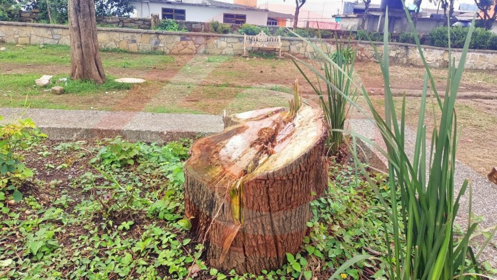 Tlanchinol, Hgo.- Habitantes del municipio han manifestado su inconformidad por la reciente tala de pinos y arbustos que se encontraban en la explanada del Exconvento de San Agustín, un sitio emblemático del municipio tanto por su valor histórico, como natural.
