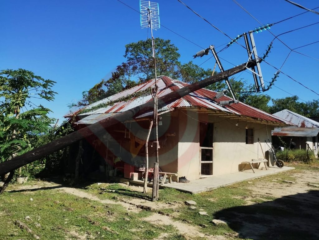 San Felipe Orizatlán, Hgo. – Un poste de madera de la Comisión Federal de Electricidad que presentaba serio deterioro esta mañana estuvo a punto de ocasionar una tragedia al caer encima de una casa habitación de la comunidad de Piedra Incada, dejando daños materiales y sin luz a la localidad.