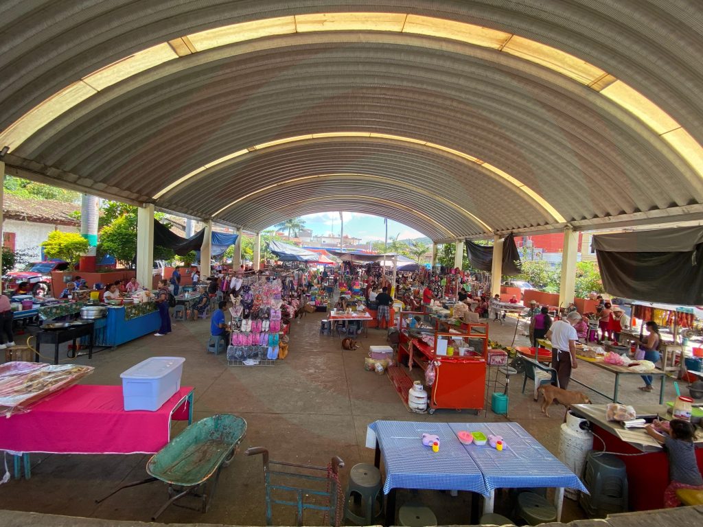 Huejutla, Hgo.- Este domingo, durante un recorrido por el complejo comercial de la comunidad de Tehuetlán, se observó que hay mucha presencia de vendedores, por la gran cantidad de puestos ubicados y la afluencia de personas en busca de lo necesario, en especial de la canasta básica.