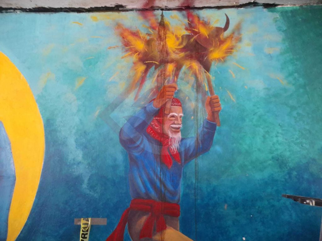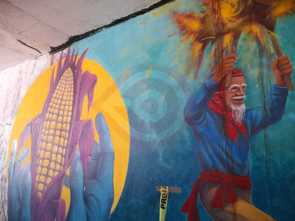 Asimismo, comentó que de igual manera ha pintado una mazorca de maíz saliendo de dos manos vigorosas masculinas, que representan el arduo trabajo de los campesinos que cultivan y cosechan este producto, que es esencial en la dieta del día a día, no solamente de los habitantes de la región sino de todo el país.