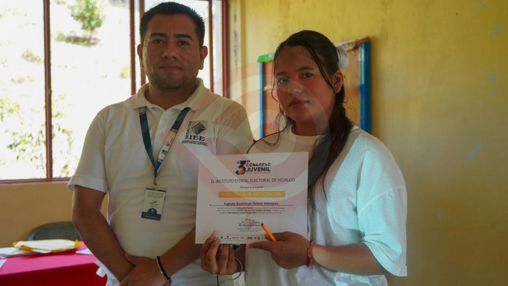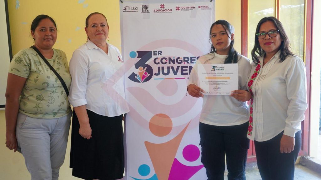 Huejutla, Hgo. – Con el respaldo del Presidente Municipal Alfredo San Román Duval y la Presidenta del Sistema DIF Huejutla, Kristel Rodríguez Flores, a través del Centro PILARES DIF se promueve la libre expresión y la participación de las juventudes en la vida democrática, en esta ocasión en la Etapa de Convenciones Distritales del 3er Congreso Juvenil Hidalgo 2025, Distrito 04, a cargo de la beneficiaria Sugeydy Guadalupe Oviedo Velázquez.