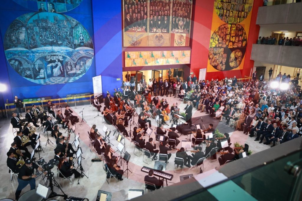 Pachuca de Soto, Hgo.- El gobernador Julio Menchaca Salazar acompañó a la Orquesta Sinfónica del Estado de Hidalgo (OSEH) durante su presentación en el Congreso de la Unión, donde envolvió de música el recinto legislativo y enalteció la cultura y el talento del pueblo hidalguense.