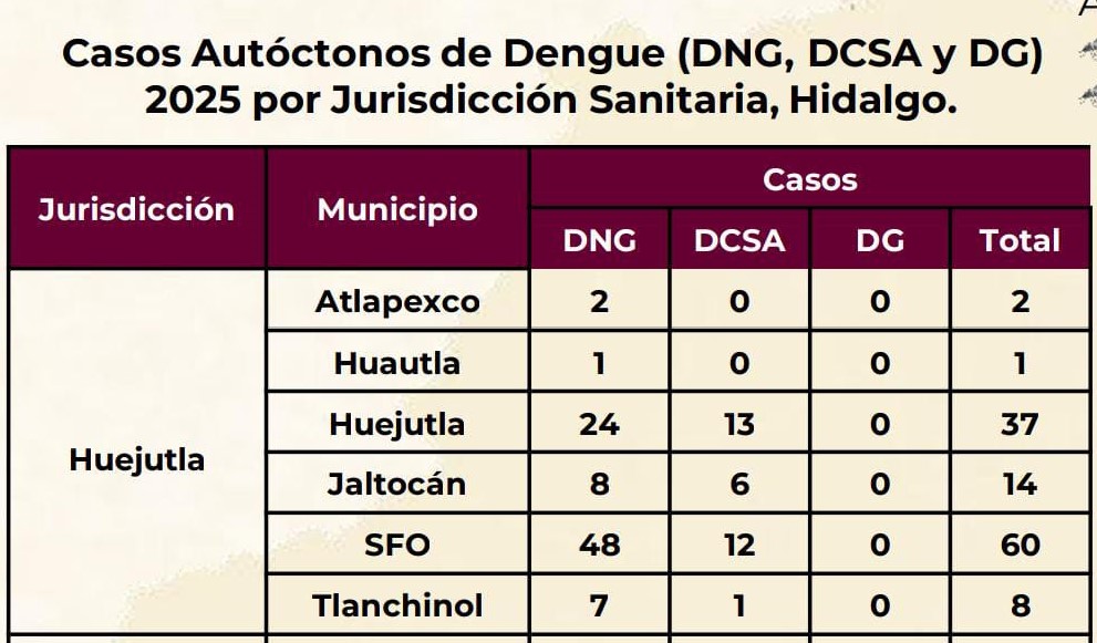 Foto Zunoticia: Distribución de casos de dengue en la Sierra y Huasteca Hidalguense