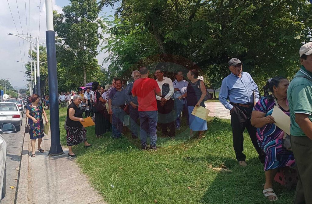 Huejutla, Hidalgo. –Desde las 4:00 am se comenzaron a formar las filas de jubilados y pensionados, a un costado de los campos de la unidad deportiva de colalambre, tras la entrega de credenciales permanentes a los derechohabientes.