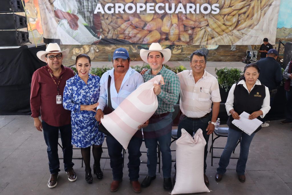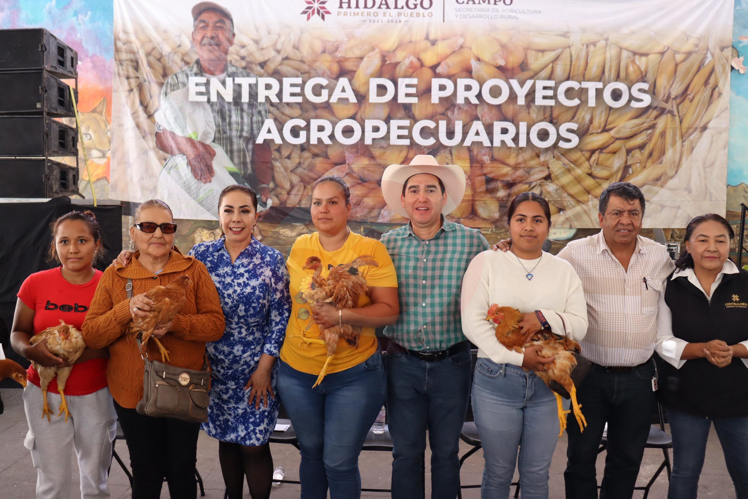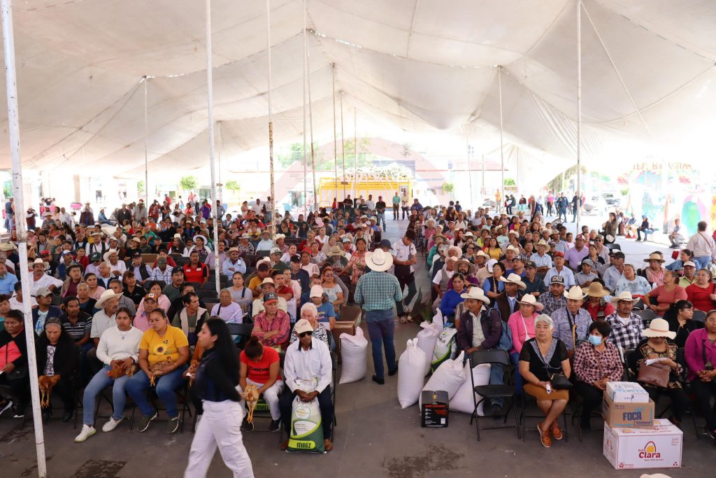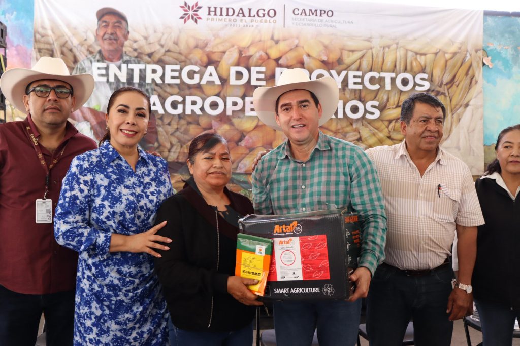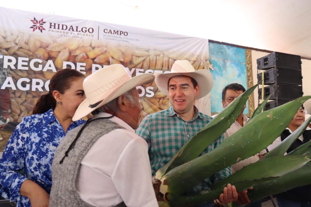 Actopan, Hgo. – El titular de la Secretaría de Agricultura y Desarrollo Rural de Hidalgo (Saderh), Napoleón González Pérez, encabezó en Actopan la entrega de semillas certificadas de maíz, avena, cebada y jitomate; hijuelos de maguey; aves de doble propósito; equipamiento avícola y paquetes para huertos familiares, en beneficio de las productoras y productores de la región.