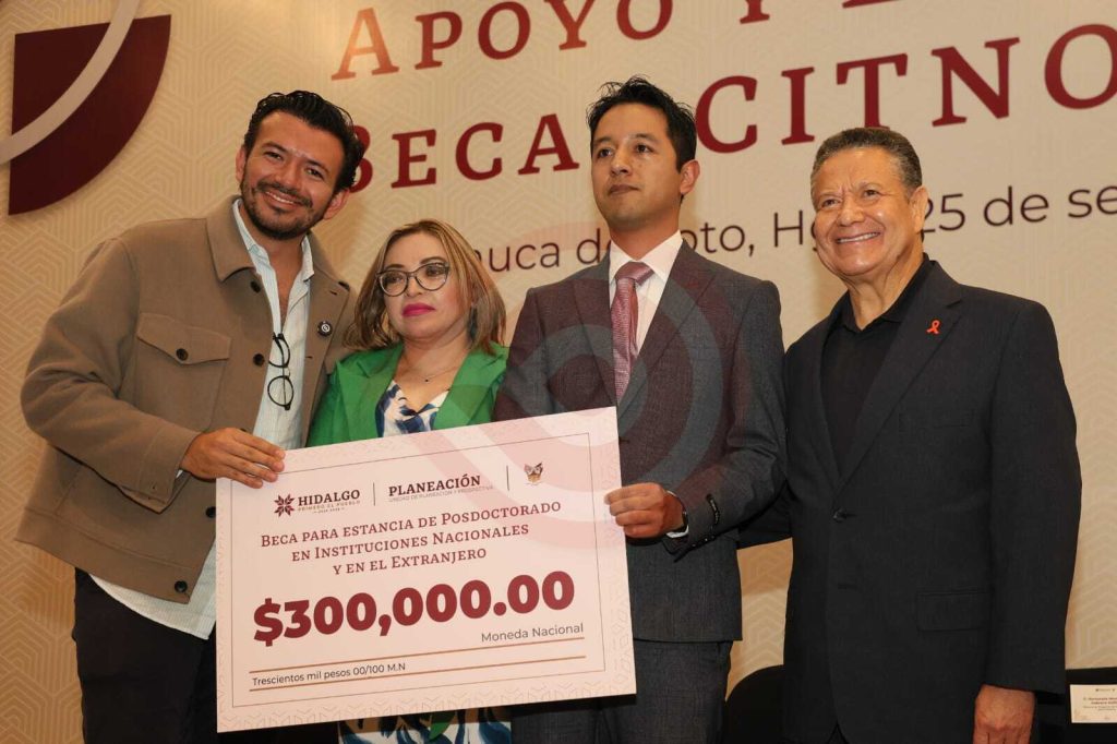 - El gobernador del estado entregó apoyos económicos a investigadores que continúan con su formación académica.