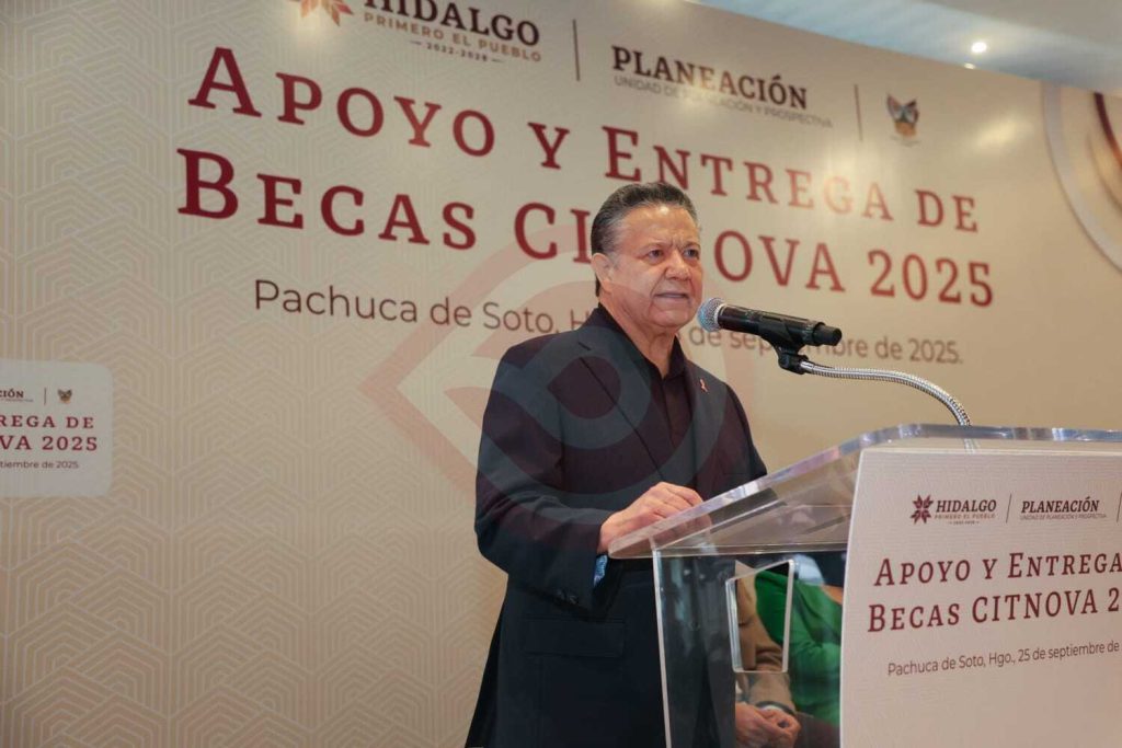 Pachuca de Soto, Hgo. – Con el compromiso de impulsar la educación, la ciencia, la tecnología y la innovación para el desarrollo de Hidalgo, el gobernador Julio Menchaca Salazar encabezó la entrega del Fondo Hidalgo y de las becas Citnova 2025 a 158 estudiantes hidalguenses que realizarán una especialidad, maestría, doctorado o posdoctorado en México o en el extranjero, gracias a una inversión cercana a 35 millones de pesos.