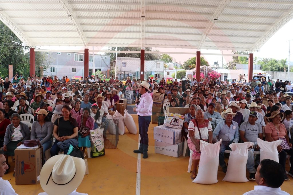 Durante el evento, se otorgaron semillas certificadas de maíz, cebada y avena; aves de doble propósito; equipamiento avícola; hijuelos de maguey; huertos familiares y vientres de ovejas, insumos que permitirán diversificar la producción, garantizar alimentos de calidad y dar nuevas oportunidades a las familias de zonas rurales.