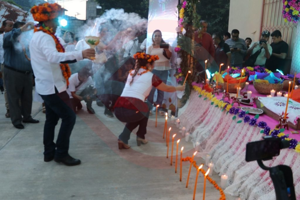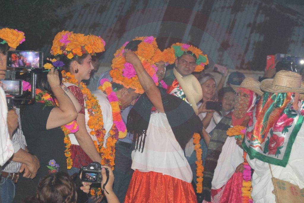 A su llegada, el alcalde fue acompañado por su esposa, la presidenta del DIF Huejutla, Kristel Rodríguez; la diputada local, Paloma Barragán; el delegado de la comunidad, Fidencio Vargas Martínez, así como invitados especiales como el empresario Jaime Redondo y otros más, siendo recibido con aplausos por parte de los vecinos del lugar, procediendo a realizar el encendido de las velas y sahumar las ofrendas.