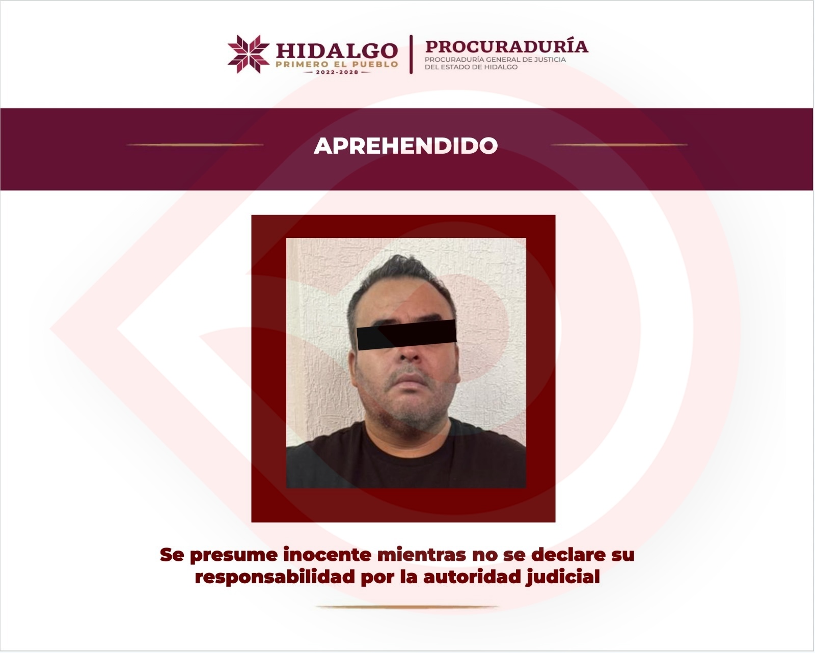Capturado probable responsable de homicidio en agravio de agente de la PGJEH