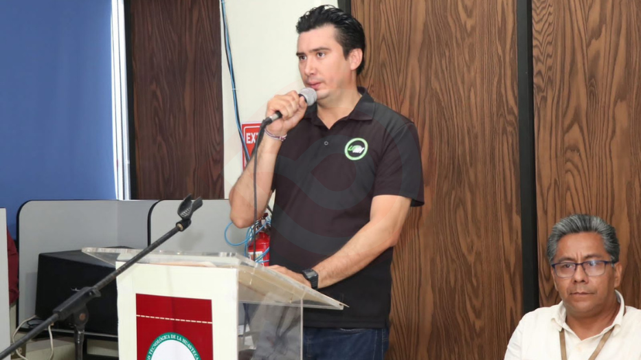 En el evento realizado en la sala de lectura de la biblioteca de la UTHH se llevó a cabo la entrega simbólica de vales al personal beneficiado con las prestaciones socioeconómicas 2025, en donde se contó con la presencia del rector de la institución, Miguel Acosta Salazar.