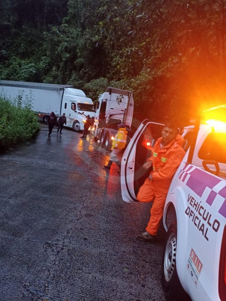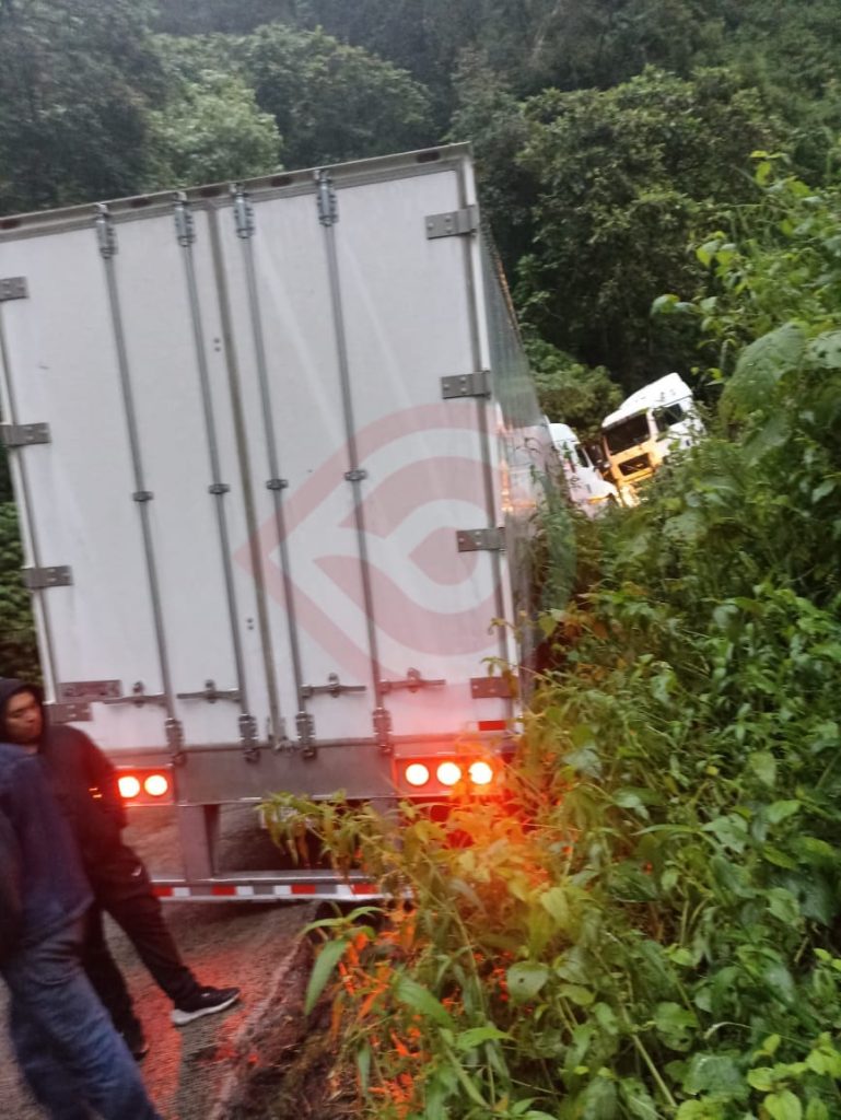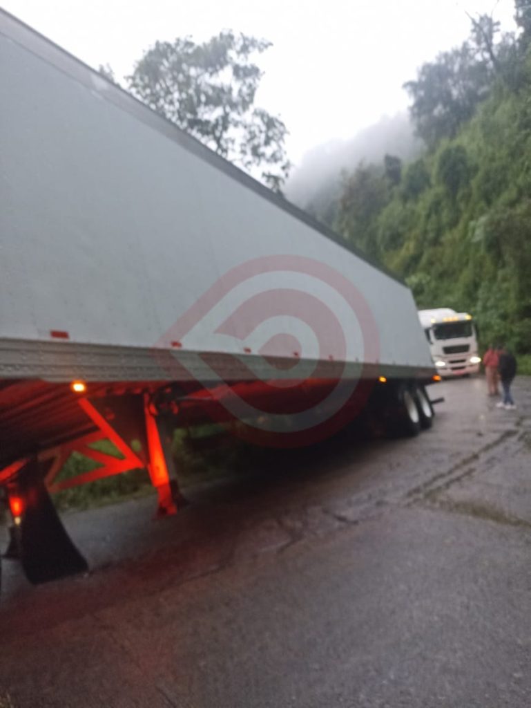 El percance ocurrió la mañana de este miércoles, donde un tráiler en una curva se salió de la carretera y estuvo a punto de ir barranco, así mismo bloqueó un carril de esa vía de comunicación, luego de las maniobras se logró rescatar la pesada unidad.