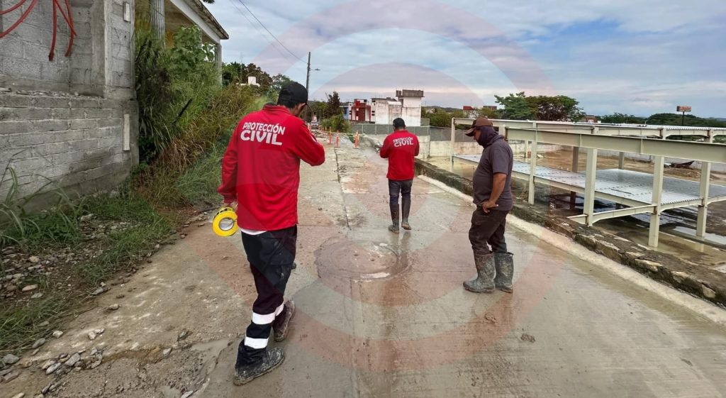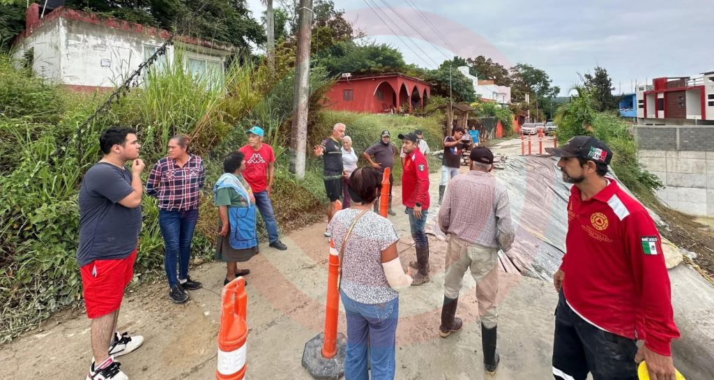 Huejutla, Hgo.- Personal de la Dirección de Protección Civil, a cargo de Héctor Armando Gómez, durante la tarde del sábado 11 de octubre acudió a colonia La Garita para verificar el hundimiento que se registró en una de sus calles.