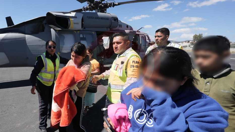 La mañana de este miércoles 15 de octubre, se logró el traslado aéreo de 10 personas más, entre las que se encuentran cinco adultos y cinco menores de edad, incluyendo a un bebé de 11 meses, provenientes de la comunidad de Xalacahuantla, Tianguistengo.