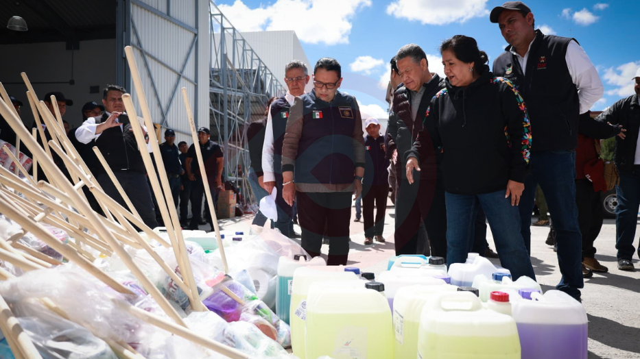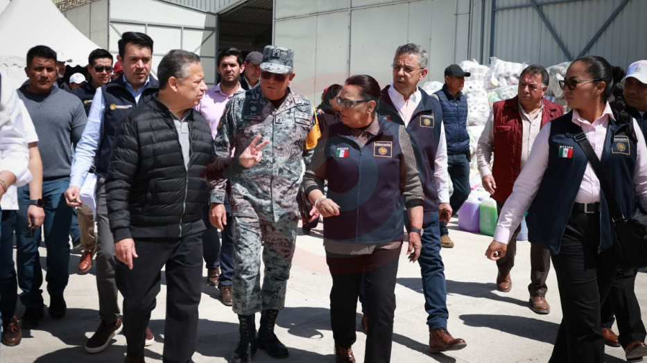 Pachuca de Soto, Hgo.- La titular de la Secretaría de Gobernación del Gobierno Federal, Rosa Icela Rodríguez Velázquez, en compañía de la presidenta del Sistema DIF Hidalgo Edda Vite Ramos, y el gobernador Julio Menchaca Salazar, llevaron a cabo un recorrido de supervisión a las labores de logística para el envío de medicinas, víveres y despensas, que se encuentran en el aeropuerto Guillermo Villasana de la capital hidalguense, y que están siendo enviadas a las comunidades afectadas por las lluvias.