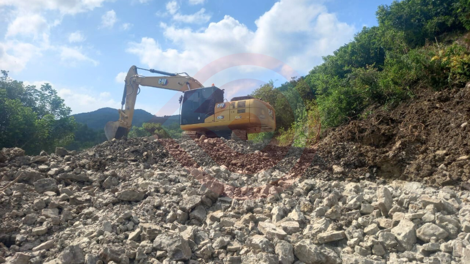 Yahualica: Atención al derrumbe en la carretera estatal Nuevo Acatepec – Atlalco – Oxeloco a través de una excavadora a cargo de la Secretaría de Infraestructura Pública Comunicaciones y Transporte (SICT).