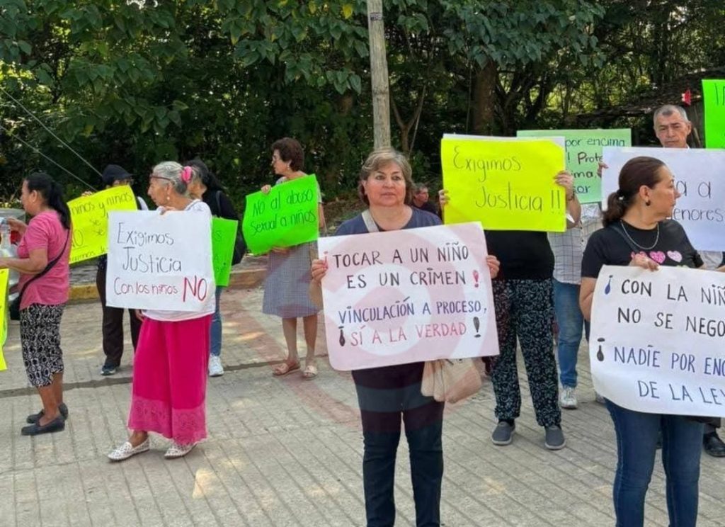 Jaltocán, Hgo. – Este sábado dos grupos de personas efectúan manifestación en las afueras del juzgado penal de la Lima Jaltocán, por el caso de los niños presuntamente violados; Por una parte, un grupo gente apoya a las víctimas, mientras que el otro grupo de manifestantes respaldan al imputado.