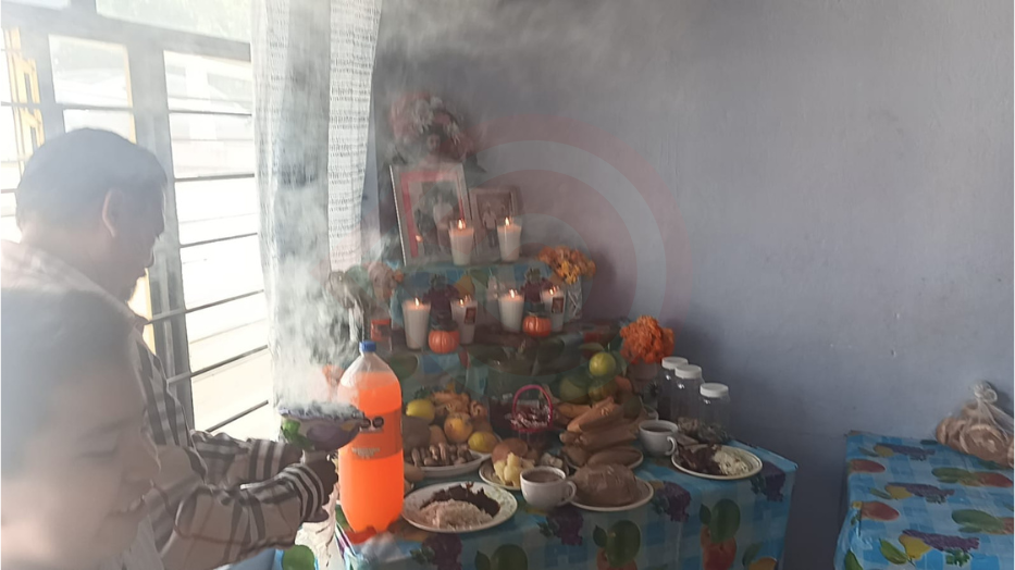 En el altar colocaron como ofrenda: las frutas, dulces, flores, veladoras, café, chocolate, dulce, tamales, pan, refresco, los cuales fueron degustados por familiares y amistades.