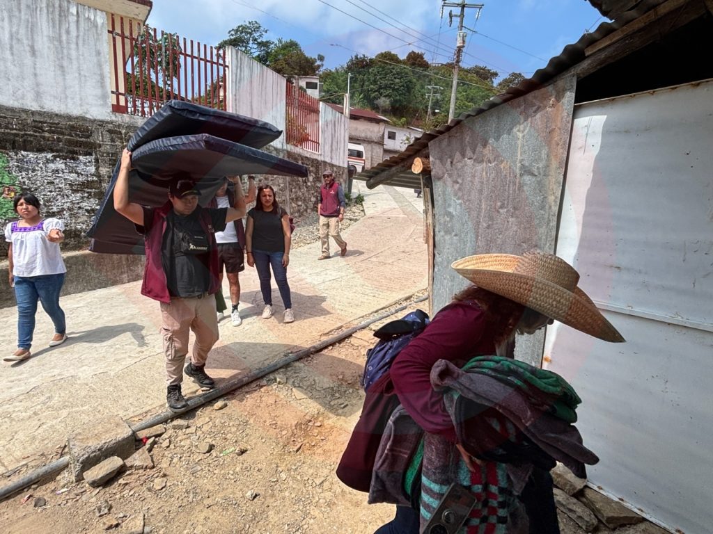 Durante el recorrido también se realizó la entrega de colchonetas, víveres y ropa, en las localidades de Atlalco y El Paraje coordinación con autoridades locales, además de supervisar los avances en la rehabilitación provisional del puente Zoquitipan, cuyo restablecimiento permitirá mejorar la comunicación entre comunidades y facilitar el acceso de apoyo humanitario.