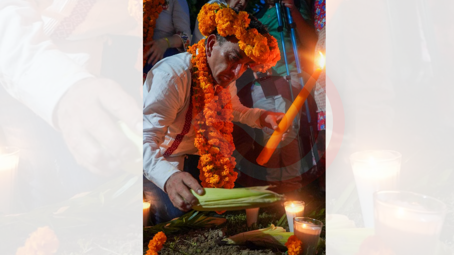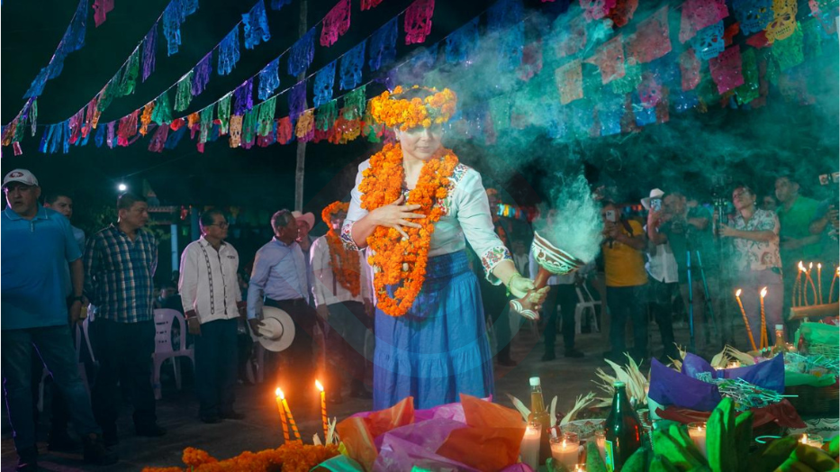 Como parte de la ofrenda, se realizó un ritual de agradecimiento a la madre tierra, en el que se enterró un tapataxtle o tamal sagrado bajo un arco levantado a un costado de la iglesia de la comunidad. Se sahumó y compartió la ofrenda depositada en el altar que se levantó frente a ese templo, además de contar con la participación de la cuadrilla Herencia Cultural de la colonia Horacio Camargo, que realizó la tradicional “bajada de máscaras” y danzó alegremente al ritmo de los sones xantoleros.