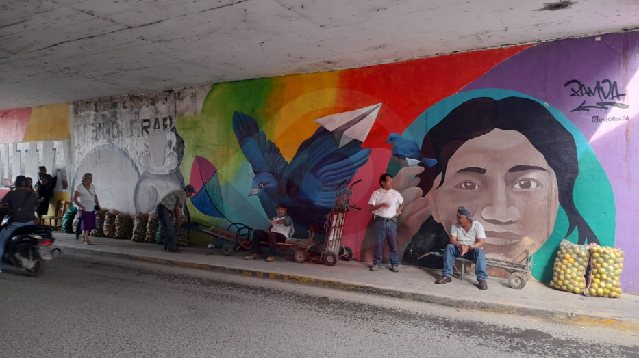 Agregó que ahora, gracias a la participación de pintores muralistas locales, ese sitio está embellecido, a tal grado, que los peatones se detienen a contemplar los murales, uno de ellos con elementos tradicionales e incluso a tomarse fotos.