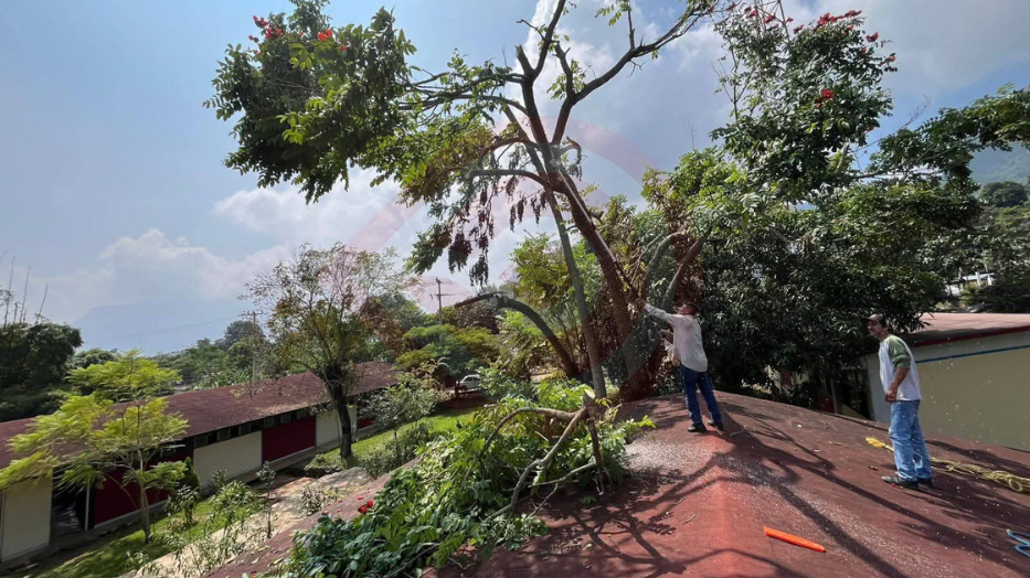 Huejutla, Hgo.- En atención a una solicitud de la Escuela Secundaria Técnica No. 36 de la localidad de Ixcatlán, personal del área de Protección Civil de Huejutla llevó a cabo labores de desrame y tala controlada de árboles que representaban un posible riesgo para estudiantes y docentes del plantel.