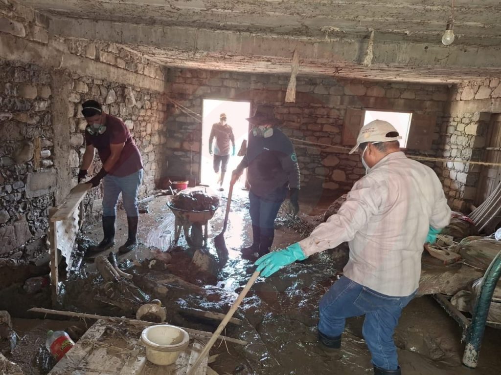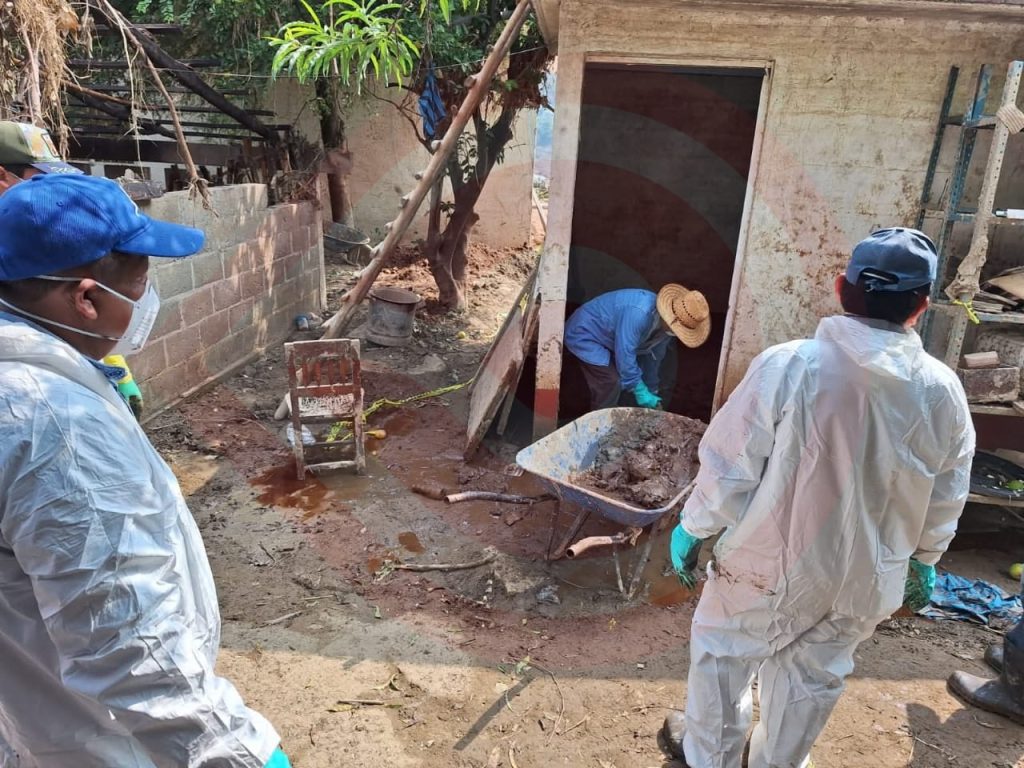 De acuerdo con la información proporcionada, el fertilizante almacenado en las viviendas siniestradas entró en contacto con el agua, lo que provocó la liberación de gases que impedían las labores de limpieza tanto de los habitantes, como del personal de apoyo.