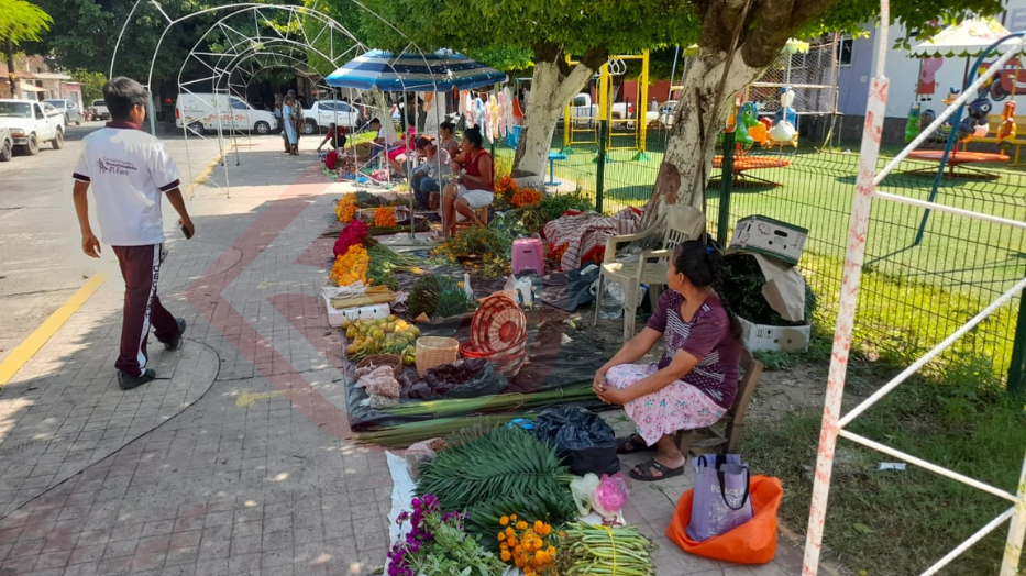Una sola vendedora de flor de cempoalxóchitl en el Mercado municipal