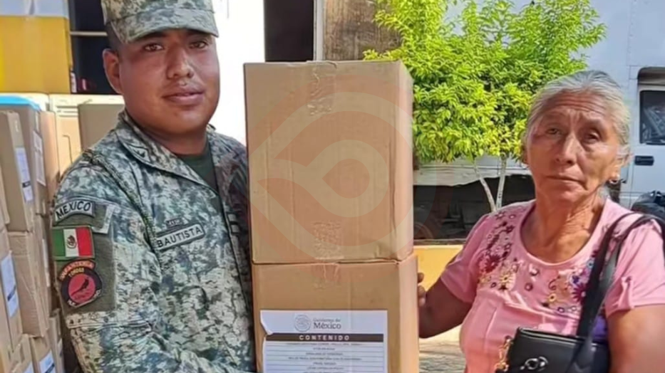 En la entrega de apoyos participó también el Ejército Mexicano, sumándose a las labores de asistencia mediante la distribución de despensas a las personas damnificadas, reafirmando así su papel fundamental en la atención a emergencias y en la reconstrucción social del país.