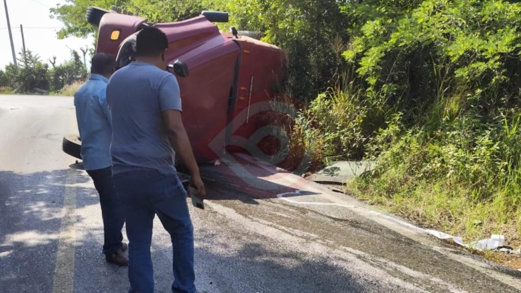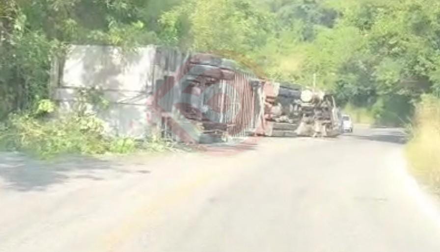 El accidente ocurrió en los límites de Orizatlán con Chapulhuacanito, donde la pesada unidad terminó volcada, policías locales y P.C., dieron los auxilios al operador de este tráiler, así mismo brindaron vialidad en este tramo para evitar algún otro accidente.