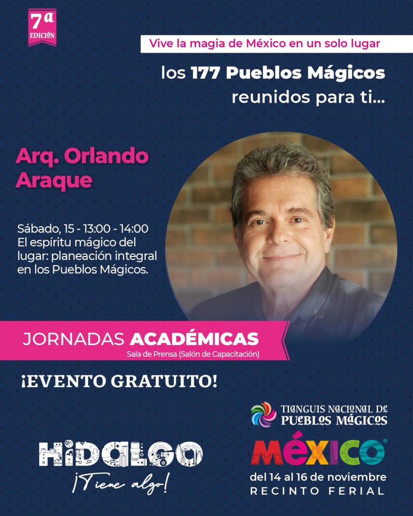 La jornada cerrará con la participación de Orlando Araque, especialista en patrimonio turístico, con la ponencia “El espíritu mágico del lugar: planeación integral en los Pueblos Mágicos”, y de Gianella Carvajal Soto, directora de las revistas México Desconocido y Escapadas, quien ofrecerá una charla dirigida a funcionarios y gestores de destinos sobre el valor de la narrativa local como herramienta de atracción turística.
