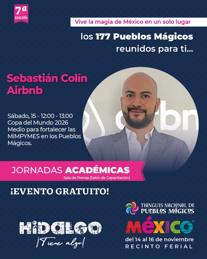 Asimismo, Sebastián Colín, director de Asuntos Públicos y Relaciones Gubernamentales de Airbnb, encabezará el foro “Copa del Mundo 2026: medio para fortalecer las mipymes en los Pueblos Mágicos”, donde se analizarán las estrategias para capitalizar el flujo turístico derivado del evento deportivo más importante del planeta.
