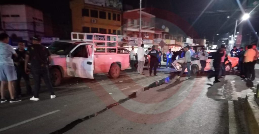 Reportes policiacos informaron que el chófer de una camioneta Chevrolet, circulaba a exceso de velocidad y se pasó el alto del semáforo, ocasionando el impacto con el taxi, Nissan Tsuru, dejando cuantiosos daños materiales y leves lesiones al conductor.