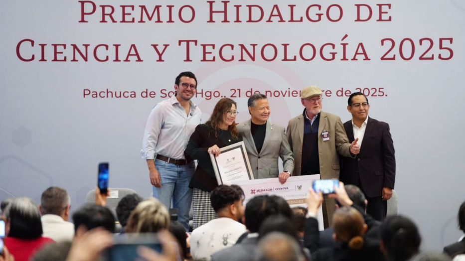 Pachuca de Soto, Hgo.- El Gobierno del Estado de Hidalgo entregó el Premio Hidalgo de Ciencia y Tecnología 2025, un reconocimiento que destaca la excelencia y el impacto de hidalguenses cuya trayectoria ha contribuido significativamente al bienestar social, al fortalecimiento del conocimiento y al desarrollo de soluciones innovadoras para el estado y para México.