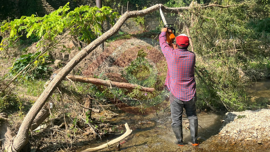 Además, expone que también trabajan en las márgenes de los ríos, hay muchos árboles que se doblaron, se cayeron y se quebraron con las crecientes que pasaron en días pasados por las lluvias producto del paso del huracán.