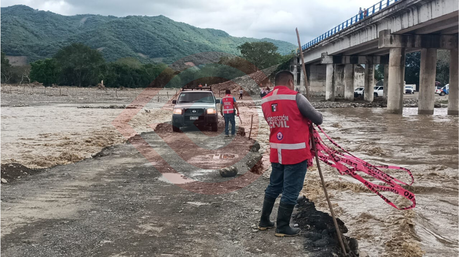 Se prevé que las lluvias continúen hasta el martes. De acuerdo con la información de los elementos de Protección Civil, durante la mañana del jueves el caudal incrementó y rebasó en algunas zonas el puente vado.