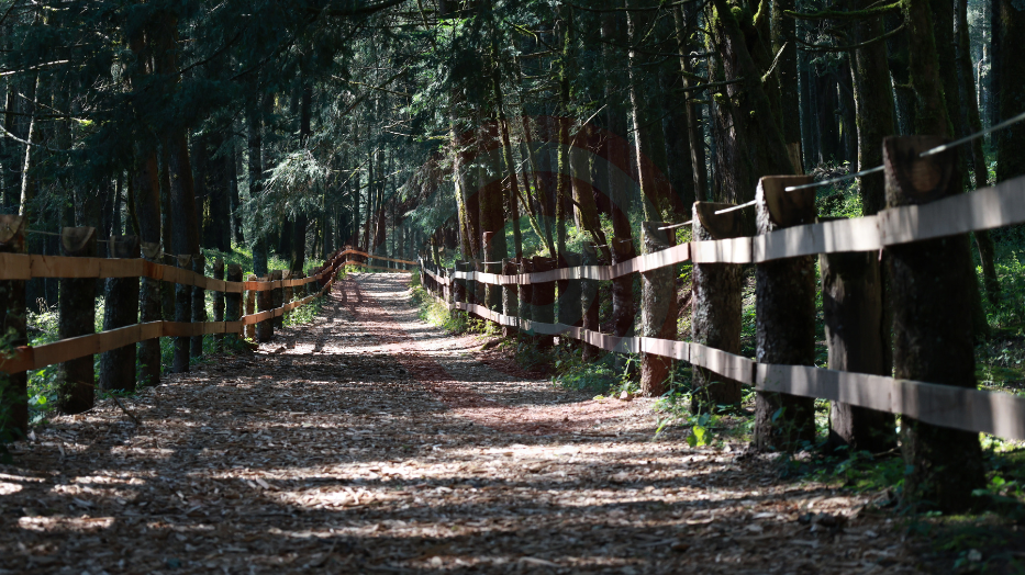 El sendero inicia con una superficie sólida de madera, cálida al tacto y firme bajo los pies o las ruedas. Conforme avanza el trayecto, el piso se transforma en trozos de madera suave que respetan la dinámica del bosque sin poner en riesgo la estabilidad de quienes lo recorren.