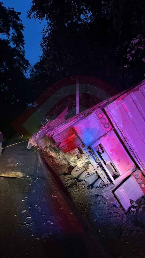 La pesada unidad terminó recostada sobre su lado derecho, obstruyendo parcialmente la vía, hasta la llegada de los oficiales, quienes se encargaron de acordonar el área y dirigir el paso vehicular.